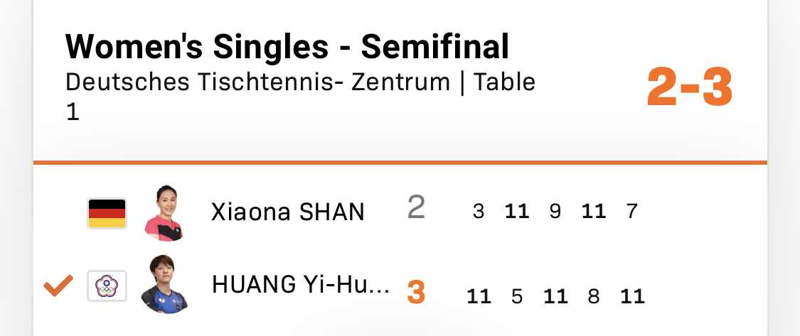 ・シャン・シャオナ(ドイツ)WR30 2-3 HUANG Yi-Hua(台湾)WR151