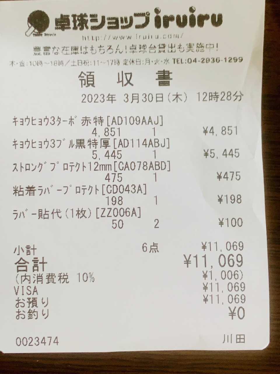 卓球ショップiruiruに行き、サイバーシェイプウッドにラバーを貼ってもらいました。