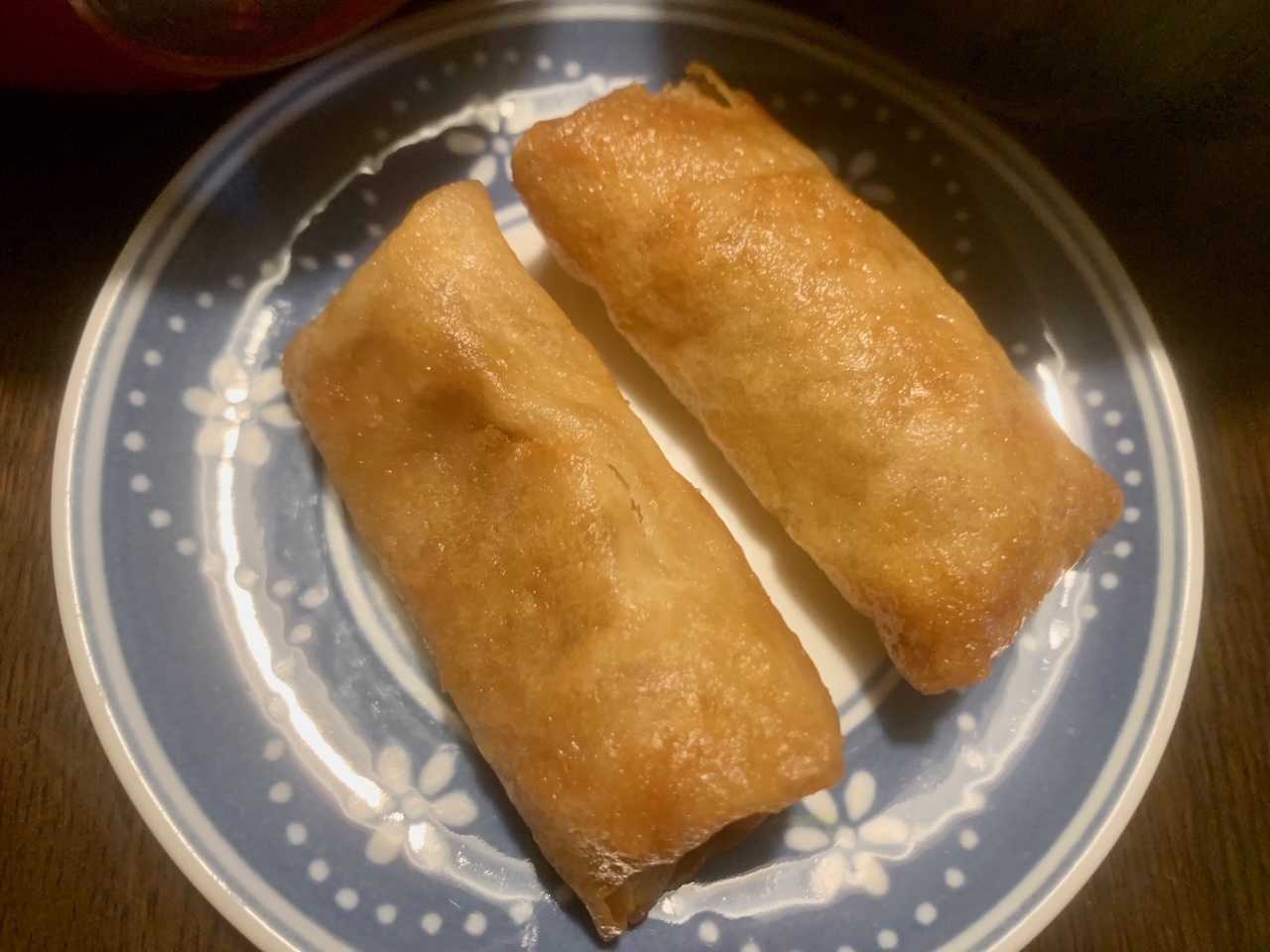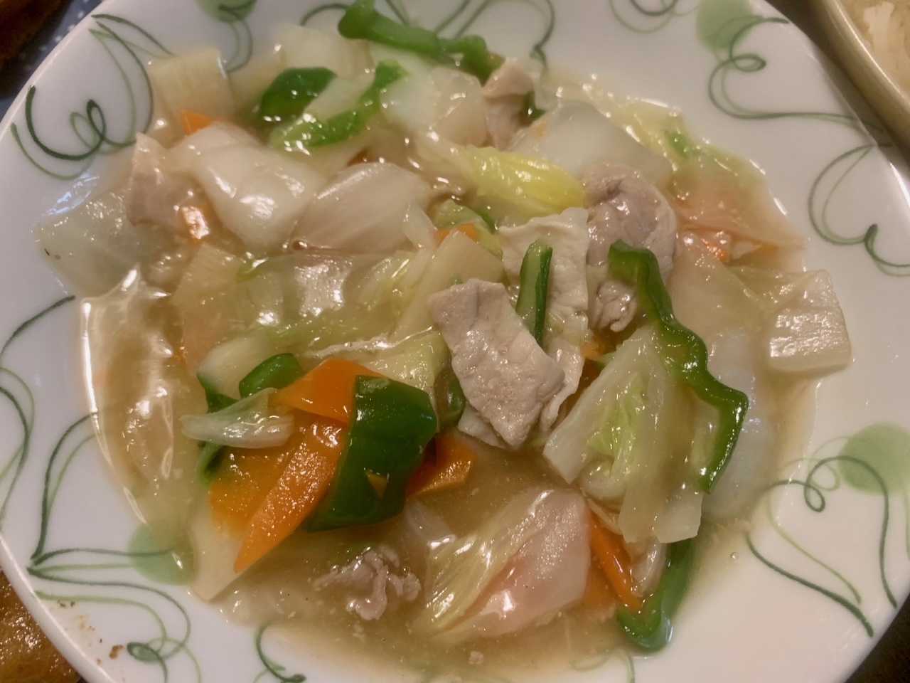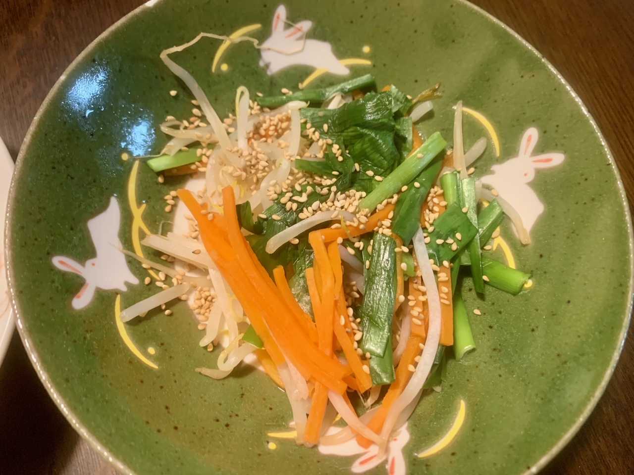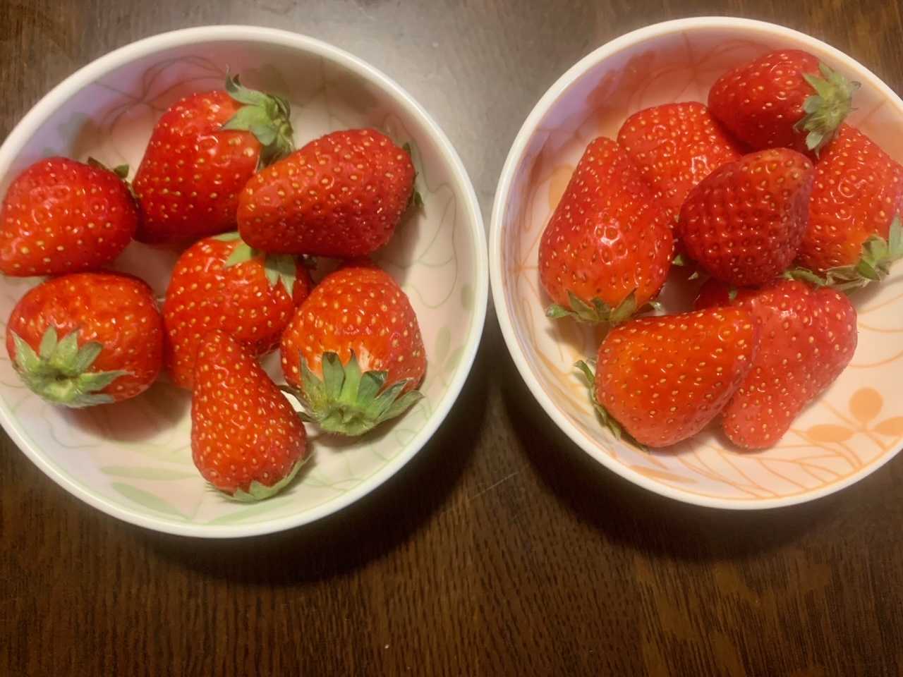 夕食は、八宝菜(烏賊・豚・筍・白菜・人参・ピーマン)、もやし・ニラ・人参のポン酢和え、春巻、小松菜の味噌汁、いちご・かおりの。