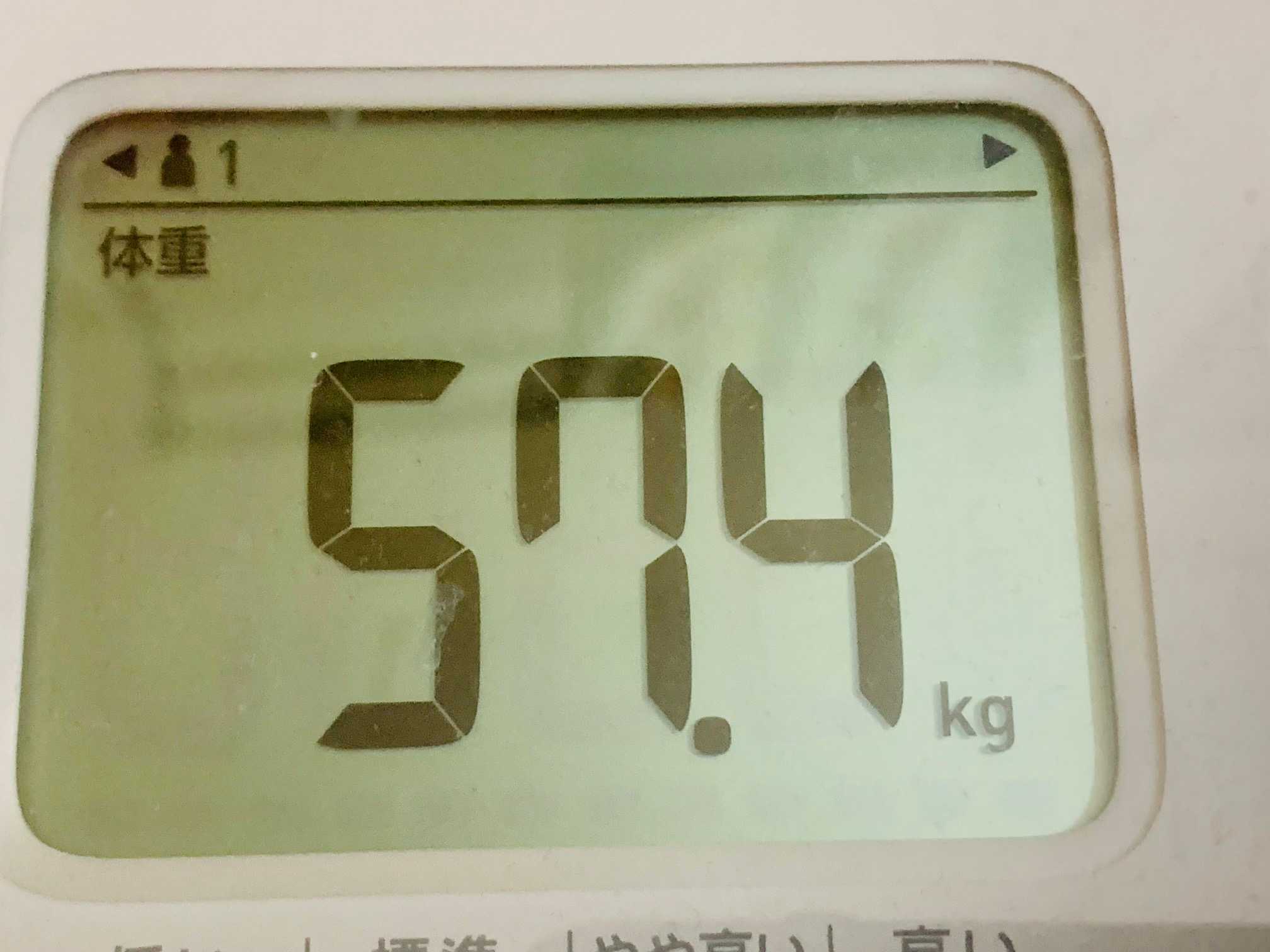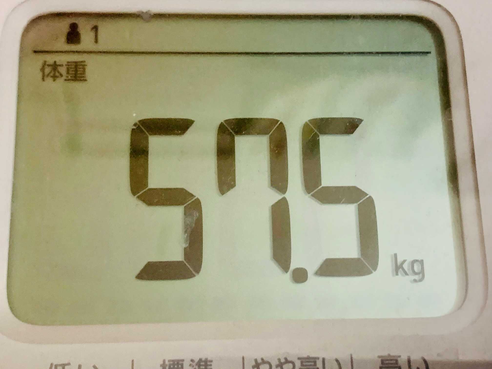 体重は、夕食後・入浴前57.5kg。2日前より0.8kg減った!