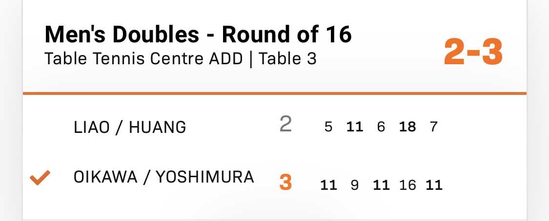 T3 及川瑞基/吉村和弘 3-2 TPE 廖振珽/黄彦誠