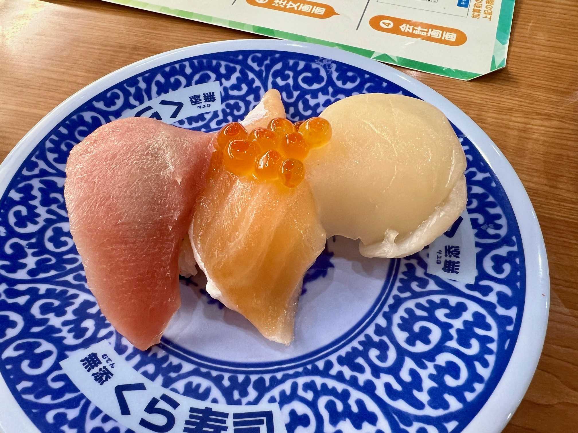 私は、三貫盛り(中トロ、大切りトロサーモンいくら添え、ほたて)。シャリ少な目です。