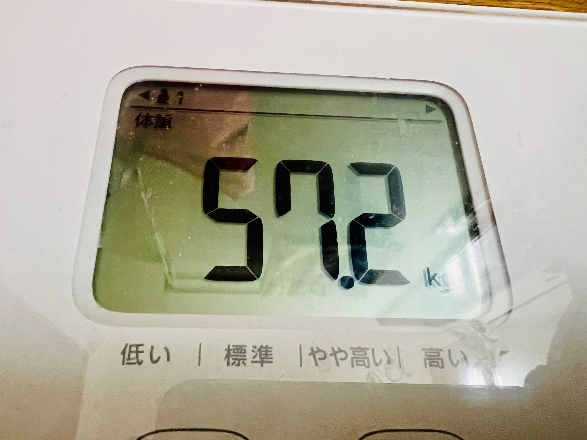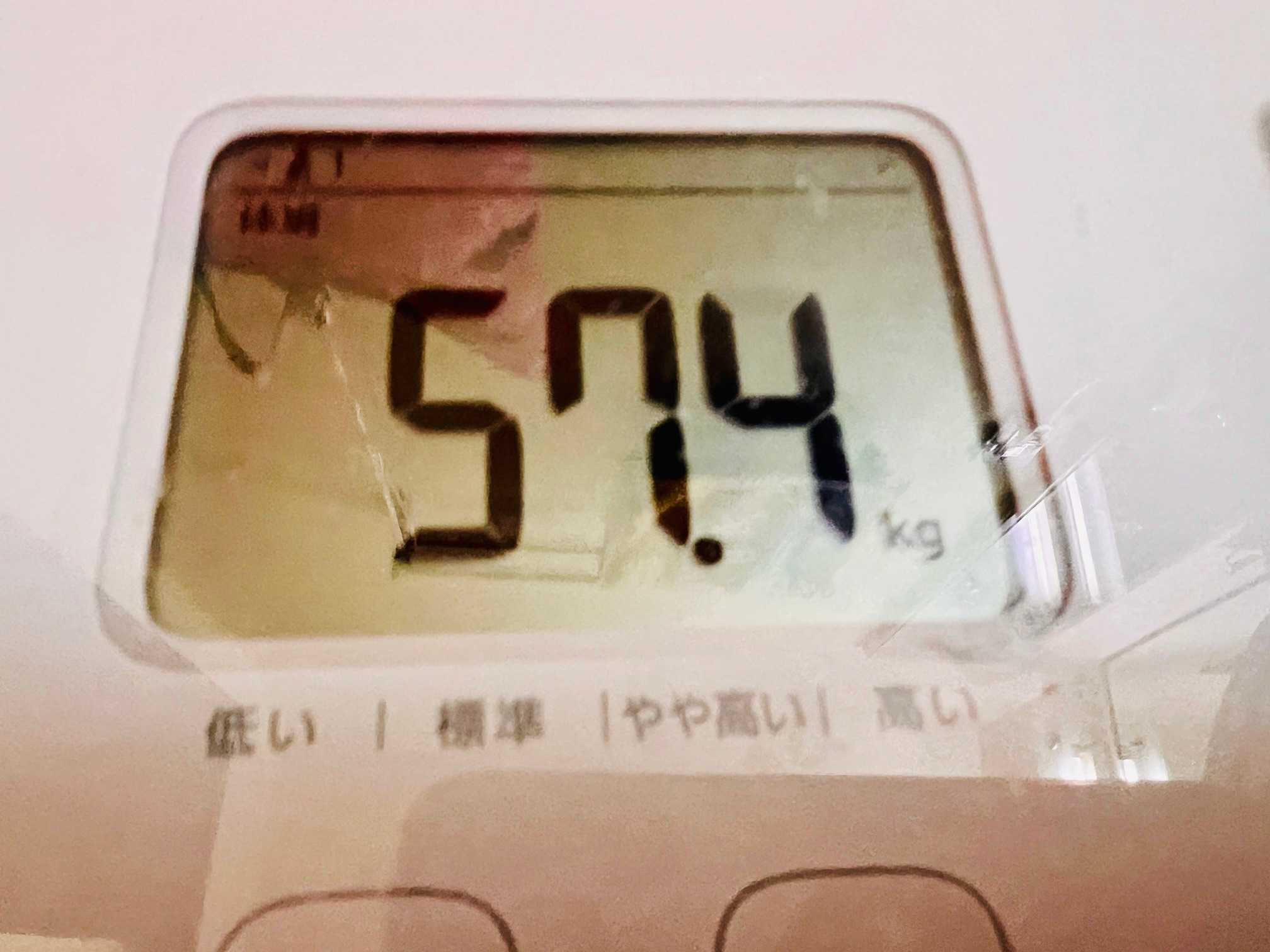 体重は、夕食後・入浴前57.4kg。2日前から0.4kg増えた。