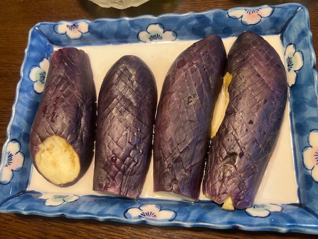 Rさんからもらった根付きネギ。下部は切って植える予定。葉は酢味噌和えでヌタにしました。