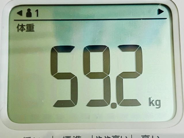 体重は、夕食後・入浴前59.2kg。2日前と変わらず。