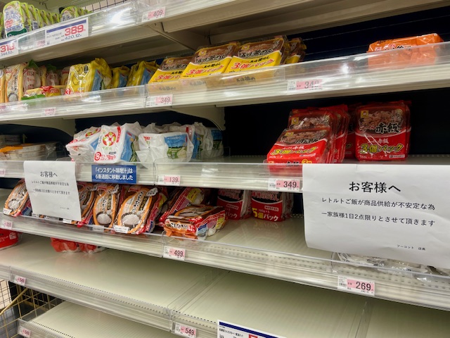 レトルト御飯も品薄・・・備蓄米を放出してくれてもいいのね。新米を待つしかないかな。