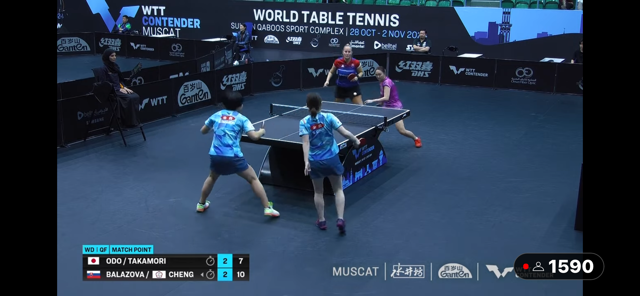 | 19:10 | 女子D-準々決勝 | 大藤沙月/髙森愛央 2-3 CHENG Hsien-Tzu/バラージョバー(台湾/スロバキア)![]() ![]() |
