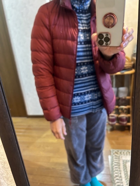 臙脂のライトダウン。