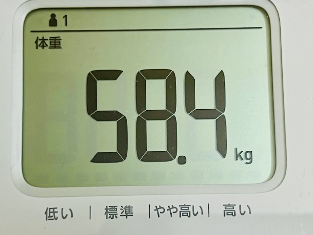 体重は、夕食後・入浴前58.4kg。2日前から0.2kg増えた。