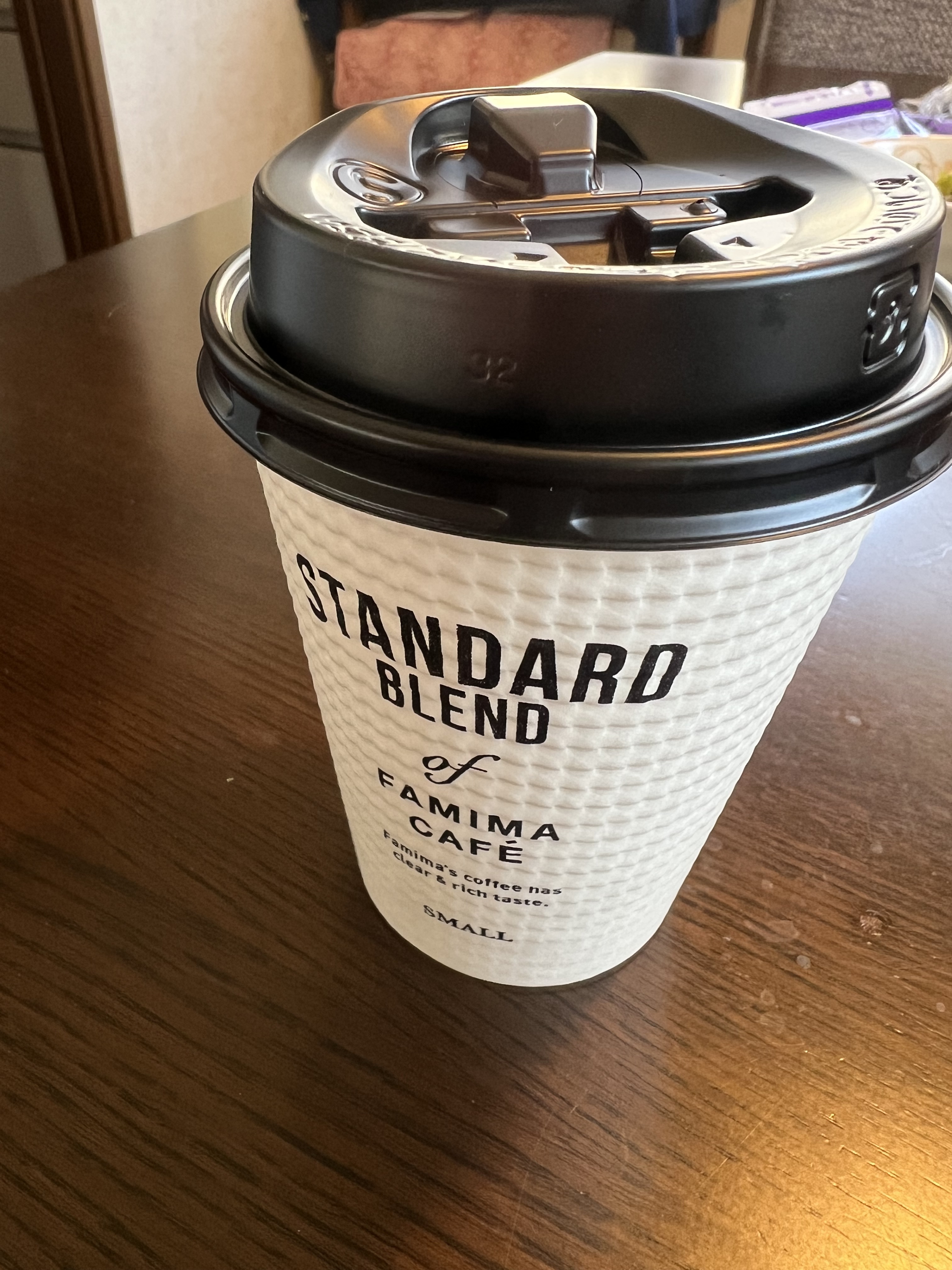 スーパー・ベルクで夫と買物。帰りがけ、ファミリーマートに寄り、コーヒー。