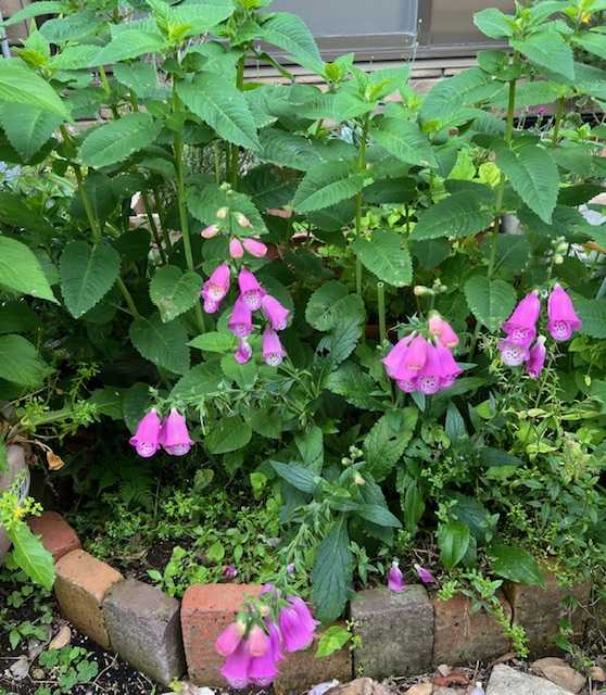 ジキタリス・F1パンサー。後ろは、モナルダ・ビーハッピー。地下茎で、花壇を占領中・・・