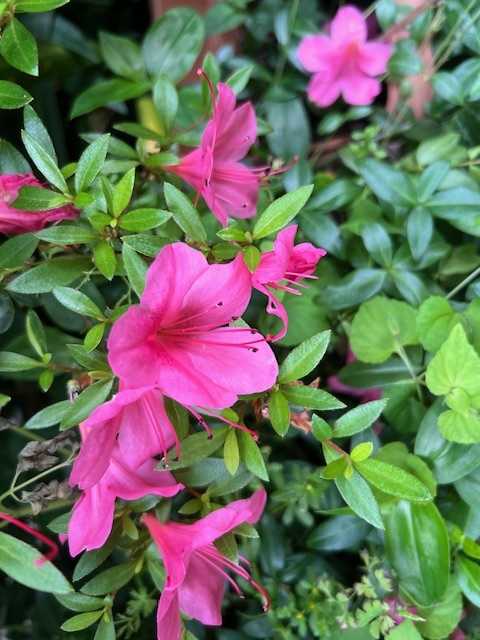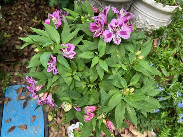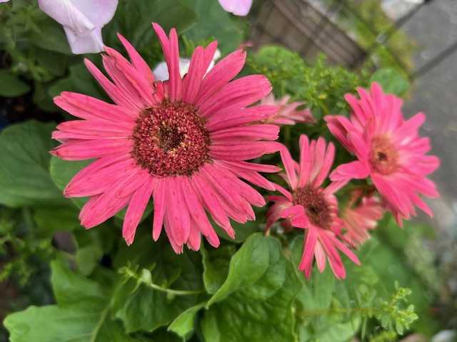 ジジガーデンマム・ダークピンク、サルビア・アズレア、つるニチニチソウが見えるように。