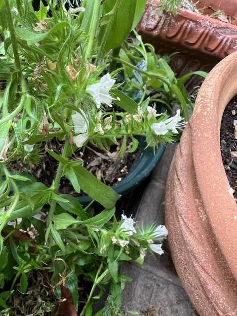 エキウム・ブルーベッダー。青花のはずが白花に。でも、おわびクーポンでまた別の花苗を購入。