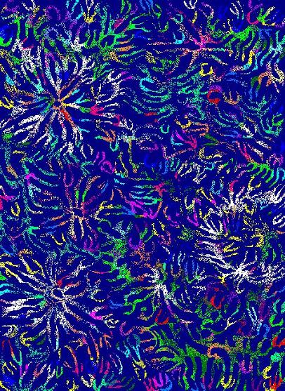 これは、ひたすらブラシを駆使しました。初めは珊瑚を描いていたのですが、次第にシナプスみたいになってしまい(笑でも、満足しました。それから、出入り口を作りたくなり、椅子も描きたくなりました。自分が座って考え事をする空間のイメージでしょうか、そんな感じです。