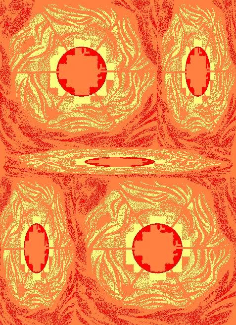 先日描いた絵の実験です。この時点では、、ただ、何となくブラシで遊んでいました。泡のような、綿菓子のような、マシマロのような、珍しくやさしい感じがするなぁと、自分でも思いました。でも、まだ不確定な世界。しばらく、ぼんやりしていたら、楕円の神様が降りてきました。(笑後から梯子の神様も。 ( 居酒屋のはしごだったら嫌だな )梯子を使って、「心 」 が移動する、そんなイメージでしょうか。色からすると心配事や悩み事だとしても、特に暗さは感じません。でも、それは敢えて不安を掻き立てる色にしたくない、といった、相反するの心の現われなのかもしれません。この絵の色をそのまま反転するとこうなります。物事は二律背反。テーマを心配事と括れば、この色で描く方が正直かもしれません。( それにしても、不安感が増幅する配色だ )不安を隠すために、無意識に反対の色を求めていたという解釈です。それとは別に、モチーフはかなり気に入っています。何気に、コレ が元だったりする。(笑