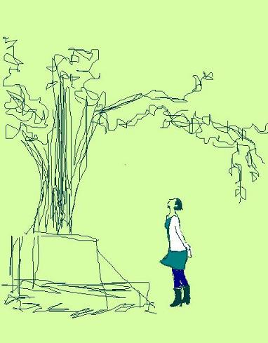 うつむく管理人。写真を反転させて、線でなぞってみましたよ。こんなのも、面白い。