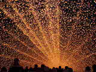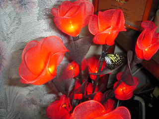 光のトンネルとにかく 美しいです お花畑に 蝶も飛んでいます。。。すごいです~ けど、 すごく寒かったです~寒いだろうの予測をして私のいでたちは。。。カイロは 腰と靴の中ババシャツにセーター、ダウンのフード付きのコート(もちろんフードはかぶりますよ)下が。。。なんとびっくり長めのスカートの下に ジャージ。。。靴下2枚重ね(靴中のカイロも入れて。。。なおかつ・・です)あと、手は軍手完全武装なんだけど(。。と、思って自分では出かけたんだけど) 周りの皆さんを見ると まだまだ足りないものが。。。 マスク、イヤーガード 。。。こりゃ 完全にスキーの時の服装で良いですね って感じでした これを待ってるときは 死にそうでした。。。なんで、こんな寒い思いをして 待ってるんだろう~ 500円でチケットを買っちゃったからかしら。。。でも、皆さん 待ってます。。。一時間は待ってないけど 30分は待ったような気がする。。。あんまり寒かったんで 忘れました。。。そのあと、あまりの寒さに「暖かいものでも食べよう~」 って麺屋さんへ。。。でも 皆さん やっぱり思うことは同じで 超満員の麺屋さん。。もう寒いし、動きたくないし暖かい店内で 待たせていただけるのなら 待ちますよ。。。これもまた 皆さん 同じ。。。 でもでも寒いけど 一見の価値はありますよ~