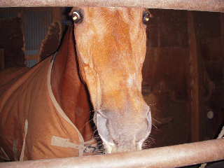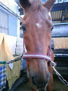 寒いよね~今日なんて この冬、いちばんの寒さぐらいじゃない??雪こそ 降ってないけどかなりの寒さです。。。こんな寒い日は馬たちが元気 元気~今日なんて けっこうやられましたよ、私。。。まず、装鞍の時から。。最近 嫌がるんだ、装鞍を。。。ま、こんなときも 今までもあったから そうは気にしてないけど鞍を乗せるときに ガチャガチャするから。。。足、踏まれた~私、45キロヤツは 絶対450キロはあるな~ 500キロ近いと思うわ。。そいつが 踏んだんだよ~特に、こんな寒くて つま先が痛いぐらいの寒さのときにその痛いつま先を踏んだきっと、爪は黒くなって。。。そのあと、取れます。。。 ひ~~ こんなことから 始まって当然 乗り始めても ガチャガチャ。。そりゃあ、この寒さで一週間乗ってなければ さすがに張ると思いますわ。。。まぁ、ここは グッと我慢して 抑えて 抑えて。。。(おさまらんよ~ )さすがに 今日はインストラクタさん 「ちょっと乗りますわ」と言われました。。。一応 おさまってきたんだけどなんだか 気に入らないぼっちゃん。。。終わってから 手入れしてるとき今度は後ろ足の爪を洗っているとき 頭の上に うん〇が降ってきたまともに 「ブツ」は 頭には乗らなかったけどちょっとばかり 前髪辺りを 擦っていったような。。。もう~~出るもんはしゃーないけど馬が 後ろ足の手入れをしてるときに ボロ(うん〇のことね)をするのって 絶対に私は わざとだと思うわ 要するに「仕返し」ってやつ~その後も ブラシをかけても ガチャガチャ。。。もう~ぐーで 殴ったりましたけど 反省の色 なしあるわけないし~~ ふん ボクは 全然 悪くないもんね