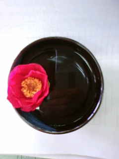 今週は うちの課は 花壇掃除の当番なんです花壇のなかに 山茶花の木があって 今はけっこう散ってるのでも、まだだいぶ 木にも花が残っていて常務が その まだ残っている花を ほうきで叩いて 落とすんだよ~せっかく 頑張って咲いてるんだから 叩かんどいてよ~と、思ったけど バシッバシッって。。。で、掃除が終わって 二階の部屋に上がってきたら常務の足元に 山茶花のつぼみが落ちててそれも けっこう固いつぼみがあ~ぁ かわいそうに。。。咲かずに落とされちゃったねと、思って そのままゴミ箱に捨てるにはしのびなくて私の机の上に コロン~っと転がしておいたのそのまま山茶花のつぼみのことを忘れて仕事をしていて10時すぎに そのつぼみを見たら咲きかけてる~なんか すご~くかわいくなって小皿に水を入れて浮かべてみた固いつぼみだったのが ここまで咲いたのなんだか けなげでしょ~花だけだから 水上げはしないよね。。。夕方ごろになったら 花びらが ちょっと乾燥してきちゃったでも、一日 楽しませてくれましたよ