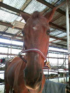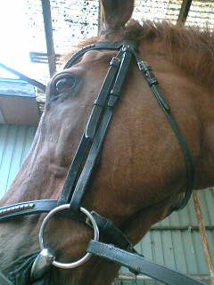 最近、私がぼっちゃんに乗れないとき ずっと乗ってもらって 手入れまでよくしてもらって 調子悪くて 臭かった爪も調子よくなってますが私は ひとつだけ 言いたいことがあるんだけど言ってもいいのか。。。かなり躊躇しちゃってますだって ほんとに よくやってくれてるんだわだから よけいに。。ですその 言いたいことと言うのはぼっちゃんに乗るときや 手入れの時は 私の道具を使って下さい と 言いましたよでね 乗るときに 「はみ」という道具を使うわけです手綱の先の ちょうど口の中に入ってる 金属の部分です昔のぼっちゃんの写真で 例を見てくださいこの 丸い輪っかのところから 口の中に入ってる金属のやつが 「はみ」です輪っかに付いてる綱が手綱ですその「はみ」を 使用後 きれいにしてくれてない私は いつも 洗って タオルで拭いて 指定の位置に掛けておきます彼は、ちゃんといつも指定の位置に掛けててくれるんだけどきたないままなんだわきたないって言ったって ぼっちゃん専用のわけだから 汚れ物もぼっちゃんのエサの食べかすとか。。。そうゆうのだよでも わたし的には 次回 また そのきたないままでぼっちゃんの口に入れるのは ちょっといやだから最近は、使う前に 洗って拭いてから ぼっちゃんの口に入れてますよ今って、そうゆうふうなのかな。。。少なくとも私は 「はみ」は洗って片付けるように教えられたし今、そのインストラクターだって 初心者の人に手入れとか そうゆう馬具の手入れとかしまい方を教えてると思うんだけどね大したことじゃないって言えば 大したことじゃないんだけどそれに ほんとに いつもいろいろしてもらって有難いと思っているから。。。言えないんよ今度もそうだったら。。。そのとき もし 私のご機嫌が悪かったら(笑)言ってしまったらどうしよう。。。って些細なことで悩んでいる 気の小さいおばさんです自分だけのことだったら 言うわけど ぼっちゃんが絡むと 言えない。。。はぁ・・・