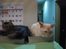 昨日のタイトルが 「連休最終日」 なら 今日は 「連休明け」でしょ~まったく、朝っぱらから ダル~~と、言うのも。。。今朝から 二人分のお弁当を作っておるのですよま、正確には 一昨日から作っているのだけど 通常の時間に起きて 作るのは 今日が初めてなので。。。起床 6時10分前ですよ~ (それでも ギリギリ ダッシュです)作る。。。と 言っても 前の晩の残りをお弁当にするんだから 朝 何かを作るわけではないけど 温めたり お弁当箱に詰めるだけの その一手間が。。。朝はめんどーーー旦那まで お弁当を持っていくと言い出したのは。。。そもそも あの 胃カメラ事件から なのですよ旦那の言い分 : これから もう夜ご飯は 夕方の休憩のときに食べることにするから ご飯はいらないわ。そもそも 毎晩10時に夜ご飯を食べるなんて 人間のすることじゃないし(←おおげさすぎ でも、そう言ったの) だから 夜ご飯は うちで食べない。それから お酒もこれから 薄めて飲むわ(今までは 氷だけ。。。だったんです、ウイスキーも焼酎も。。。) 原液飲んでちゃいかんでしょ~そうそう それから 「酢」もやめるわ。そもそも ちょっと濃い目に飲んでいたから それで胃をやられたかもしれん(。。。って あんた 胃なんかどーーもなかったじゃん)でも、さすがに。。。朝はパン食で 昼夜 外食では 申し訳ないので。。。「私と同じ 残り物のお弁当でよければ 持ってく」 と 自ら 墓穴を掘ってしまったのです。。。言った以上 しゃーないので作ってますよ。。。前の晩の残りを。。お弁当に。。。 (残りじゃないわ、先にお弁当の分を取ってから その残りが 私の夜ご飯になってます まるで お弁当のような 夜ご飯。。。酢だって 「すごく身体にいいんだから あんたも飲んだら」 とか 言っちゃって 何が あれを濃い目に飲んだから 胃が そんなわけないじゃん それに あんたの胃は きれーーな胃なんでしょお酒 薄めるそ~か じゃあ シャビンシャビンに 薄めて飲んだら 経済的よ 身体にもい~しそうか。。。元来 健康オタクだったのね以前は 行き倒れが理想。。。なんて 言ってたくせに街中 人通りの多いところで 突然倒れて そのまま死ぬのが 理想なんだって~そりゃ 一人暮らしで 死んじゃっても誰にも発見されず。。。よりかは いいよね。。けどさ。。。そーーーんなこと言ってたヤツが同じ口から出た言葉とは 思えんことを言っとるわふぅ~~~ 一通りは言ってやったけど 言い足りないから 。。。だる~とか 言いながら だらだらと文句を書き並べました今日は 同じ休み明けでも なんかモードが違うと思ったら。。。子供達は 夏休みなんだね~ いいな~~この連休に 仕事場の人たちは けっこういろいろと遊びに行かれたようで。。。海方面、山方面。。。 高速道路 すっごい渋滞だったらしいですよ近場でうろうろしていたのは 私だけかも。。。高速道路のトイレなんか すごかったって仕事場の子が3人子供がいるんだけど 「下の子二人は 悪いけど オムツしちゃったわ」。。。って(もう オムツはいらない子なんだよ)「で、こんなときに限って ”おかあさん、うんこ~” って言うから 満員のトイレをやっと順番待って 入ったのに ”こんな汚いところでできん~” って。。。もう 怒れちゃってさ~」 って。。。怒れたって 何だって しゃーないじゃん。。。マジ 私は 遠出しなくてよかった。。。 トイレは ネック。。。。だからな~~~休み明けだと言うのに やっぱり いっぱいダラダラと書いてしまいました はい お疲れ なんか。。。冷ややかな。。。ネコたち。。。
