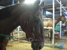 ぼっちゃん、こんち~あっずんずんあ~またまた そんなに近くに来なくてよろし今日は お手入れだけですよ昨日 乗ったしね暑いからさ手入れだけしにきたのたまには いいでしょ~。。。って 肢を洗いながら 見たら。。。えなんか 後ろ肢が 腫れてるじゃんこんな私でも、お仕事じゃなくても 20年近くも 馬と触れ合っていたりしているとこの腫れ具合は 見たり触ったりすると「動かしてもいい腫れ」か 「動かさない方がいい腫れ」なのかぐらいは わかるようになるのですよ今日のは 「動かしてもいい腫れ」 だと 判断いたしまして(一応 インストラクターにも聞きましたがね)私の 嫌いな 引き馬をいたしました私さ~ 馬に引きずられるんよ本来は 引き馬は 人間が馬よりも前を歩くのが鉄則なのにぼっちゃんは 並びたがる。。。で ズンズンと行きたがる(追い越すのよ。。)そのうちに やや速足っぽくなる。。身体を張って止めなきゃ足も踏まれるし(今日も 踏まれた)できることなら 乗って歩かせたいのに。。。馬場ではレッスン中だししゃーないから 外、行くか~~他の子(馬ですよ)は みんなおりこうで引き馬されてるしぼっちゃんだって やりゃあできるわ。。。。。。。。やりましたが。。。右腕が 疲労してますふんっ 努力の甲斐あってか。。。気持ちだけ 肢が。。。腫れが。。。引いたことにしておこうまぁ 私は 疲れたで~あんたも なんか 疲れた顔やね。。。 で、今日は 三連休最終日なんだけれどそれなりに 充実した? 三連休でした今日は 当初の予定では ゆっくりとしようかな~と 思っていたんだけどお昼に 桃を買いに行ったのですこの辺の桃は けっこう美味しいので有名らしいです(地元ではね)なので 農協の出荷センターに行って並んで(笑) 買いましただって 並んで買うぐらいの価値があるぐらい美味しいのですよ母親に頼まれて 宅配の分も申し込んできたので もう お金がないわまじ、この連休は よくお金を使いました。。。お札に羽根が生えたように どんどんなくなりました。。。多分 お財布に お札は 入ってないと思う。。。ま、もうじき給料日やしねそれまでの辛抱。。でも あと5日もあるか。。。 それから お金がないのに。。。じゃないけど。。。土曜日に またまた ペットショップに犬を見に行ったわけですやっぱり 犬の魅力は 捨てられないのですよしかも やっぱり 大きい子に 目が行ってしまう。。。で、今回は珍しく 旦那が すごーーーく惚れてしまった子がおりまして。。。そしたら ペットショップのお姉さんが「出してくるから 抱っこしてみてくださいよ」 って。。。で 抱っこしたら。。。なーんか ななちゃんと同じ匂いがするんだ~なんか 懐かしくて 泣けちゃいそう。。。抱っこした犬も すごくおりこうで 腕によりかかって甘えてくるの「大型犬がお好きなんですか?」 と 聞かれて「前に飼っていた子が ゴールデンだったので。。。その子が死んじゃって。。。やっぱり寂しいから 犬、欲しいな~って 見るだけでも見たいから いろいろ見てるんですよ」 って言ったら。。。お姉さんが その犬を撫でながら「おとうさん、おかあさん 私じゃダメかな~」 って言うのよ。。。その時には 欲しいね。。。って言いながらも そんな急に決められないし「また 来ます」 って帰ってきたんだけど旦那が その日は あんまり何にも言わなかったくせに昨日になって「あいつ かわいかったな~飼いたいな~」って 何回も言うので、実は 仕事場で ネットでいろいろ見たりもしてたらしい。。。「ねね、あの犬種がいいの それとも あの子がいいの」 って聞いたら。。。どうも あの子がいいらしい。。。びっくりしたわ前は。。ななちゃんを飼うときは 大型犬を飼うのは反対だったくせにこんなにはっきりと 「あの子がいい」 って言うとは思わんかったよっぽど あの子が気に入ったんだね「じゃあ 飼う 明日 ペットショップに電話して聞いてみなよ、まだ あの子 いますか」って。。。「うんうん」すごーく嬉しそうに ご機嫌さんになって早速 ネットで そこのペットショップの電話番号を調べて 今日の朝一で電話をしたらしいのそしたら 売れちゃったんだって。。。昨日の夜。。。残念だったね。。。でも、旦那は諦めていなかった「あの子の兄弟はいるかどうか聞いてもらうことにした」 とか 「同じような子を探してもらう」 とか言ってますすごい惚れ込み様だほんとに はっきり言って 旦那がこんなに行動を起こすのは珍しいですだから 今回のことは 旦那に任せようと思います家族が 近いうちに 増えるかも~