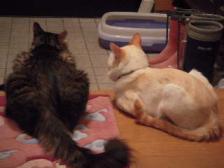 甘えっ子ジュリ明日から お休みなら 仲良くしようニャンえ~ ジュリちゃんと。。。そだね~ たまには(笑) 仲良くしよっか 明日から お盆休みですごくごくありきたりの お盆休みなので 今週末までですが。。。今年は 来月も 同じくらいの時期に連休があるよね ちょっと うれしお盆休みの間に これといって お出かけの予定はないけれど この辺でブラブラ。。。ぼっちゃんとこも行きたいし 映画もみたいし。。。その映画なんだけど。。。「ハチ」が 見たいんだよね~けど 見たいんだけど。。。やっぱ 迷ってますだって 絶対 大泣きだもんずっと前に やった 日本版の元祖「ハチ公物語」。。。あれを見て えらいことになりまして。。。友達と 名古屋の映画館に見にいったんだけどそれも 日曜日の昼間に。。。ハチ公物語は もちろん大泣きでしたで、映画が終わると ジワジワ~っと場内が明るくなってくるよね私ら あんまり大泣きすぎて すぐに席が立てない。。。やっと 立って 映画館の外に出たけど 泣き過ぎて 化粧もとれとれで、ぐちゃぐちゃ ボロボロの汚いおばさんたちでした映画を見てから お昼ご飯を食べようね~ って言ってたのに。。。泣き過ぎで、口の中 塩味だもんなんか めちゃ カッチョワリィ。。。(でも ボロボロで。。。なんか食べたんだよね~何か忘れたけど。。。) もう 絶対に、大泣きの映画は映画館では見ないもんね 特に昼間は。。。見るなら 夜にしよ 夜、夜 夜なら まだマシかも。。。って 今度は 「大泣きのハチ」で失敗したから その後は しばらくしてから 「いたず」っていう北海道の熊の映画を見たのそれも けっこうダメだった。。。「やっぱ、動物もんはあかんって~」 って それ以来 動物ものの映画を映画館で見るのは やめましたでも、最近 どうも あの「ハチ」が気になって、気になって。。。あのポスターを見るだけで ジワ~ンとなってくるんだけどね。。。ちょっと葛藤してますやっぱ もう少し待って 家で見て。。。心置きなく 大泣きした方がいいかしら。。。 でも、映画館は すぐ近くにあります。。。(笑) お揃いの箱で。。。やっぱりジュリは シロちゃんと 仲良くお留守番かも。。。ねムセッ