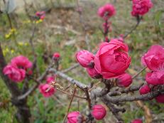 この赤い桃の花は赤とは言いながらやや紫がかっている。