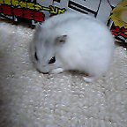 寝起きでボケてたのか動きが止まったままだったのでパチリ。 ワリとまともな見本みたいな写真が撮れました(笑) ホントに『こうしくん』みたいですね~w( ̄o ̄)w オオー! 只今放牧中です。また昨日と同じスチール棚の下に潜り込んじゃってますが、覗き込まなくても隙間へおやつのピーナッツを持って手を突っ込むとカンタンに釣れるんですよ~(笑)こんだけ単純だと楽ですぅ~♪ああ、息子もこんなにカンタンに釣れたら逃走されても楽なんだけどな~。ついでにお父しゃん、2匹目購入したいそうです。今日もお仕事の帰りにペットショップ寄ろうとしたら丁度閉店時間だったそうな~。今度は絶対にホワイトにする!って言ってます。ハムちゃんはハムちゃんでかわいいけど、白い色のがほしいって。ハムちゃんとの折り合いがどうなるか判んないけれど、私ももう一匹くらいいけそう♪って思い始めました(^^ゞ。さて、そろそろ放蕩娘を捕獲に行って来ます(笑)