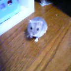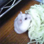 「おか~しゃん、ごはんまだ~?」・・・と、言ってるような気がするハムちゃんの登場↓。 ハムずのごはん。気温が急上昇して生野菜なんか入れるとすぐしおれちゃうので、活動が活発になる夜中ギリギリくらいに用意することにしました。小松菜なんかもビニール袋に入れて口を閉じて野菜室に入れておくと5日くらいは持つかな~?最後は茹でて人間用のお浸しなんかにしちゃって丁度いいくらい♪今日もモリモリ食べてくれてました。でも、夜中だとおはるしゃんがお世話出来なくて寂しそうにするので、生野菜が入る器だけ後にして、それ以外の砂や水やペレットなんかの用意だけは先にやってもらうことにしました。ちなみにおはるしゃんはハムずが苦手だけどお世話はしたいらしく、普段留守の状態が丁度良いみたいです(^_^;)。ここから前回載せきれなかったハムずコレクション。-------------------------- 「こんち、お日柄もよろしう~」揉み手擦り手していたので、ついついこんなセリフを入れてしまいました~(>▽<;; アセアセ。 「なあにぃ~?」覗いたら寄って来てくれたので、下アングルから撮ってみました。ホント、下から撮るとかわいいじゃないかー!!(また親バカ) 最後は目が付いた団子・・・じゃないまん丸リボンちゃんで〆を~~。