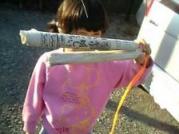 私と一緒で運動神経がイマイチのおはるしゃんと、なわとびの練習をしました。テレビで「こうやるといいよ~」という方法を紹介していたので、早速実践。 グリップ部分に長めに新聞紙を巻きま~す。 で、これでふつーに飛びま~す。こうすると、縄が回しやすくなるのかな?おはるしゃんでもなんとか3回跳ぶことが出来ました(*^^)v←3回跳ぶと言っても1回づつを連続・・・というカンジだけど。 ってことは、ふつーの運動神経の子だったら、ラクラク出来ちゃうかも?誰か試してみますか?ちなみに、出来るようになってきたら、だんだんと新聞紙のグリップを短くしていって、最後には元の縄跳びだけで跳ぶようにしていくそうだ。今日は一人で跳ぶ以外に、二人跳びにも挑戦してみましたが、私が縄を回して最高7回出来ました。ってことは、タイミングは掴んでいるけれど、縄が上手く回せないってことかな?同時の動作が出来ないってことかな?・・・がんばって練習するしかないかな?おはるしゃん。