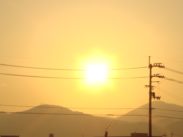 久し振りに太陽が昇る頃6時前起きてまぶしい太陽をデジカメで撮影 感動する撮影で記載します。俺ながら上手く撮れたと思っています。 皆様如何ですか御意見を待ってます。