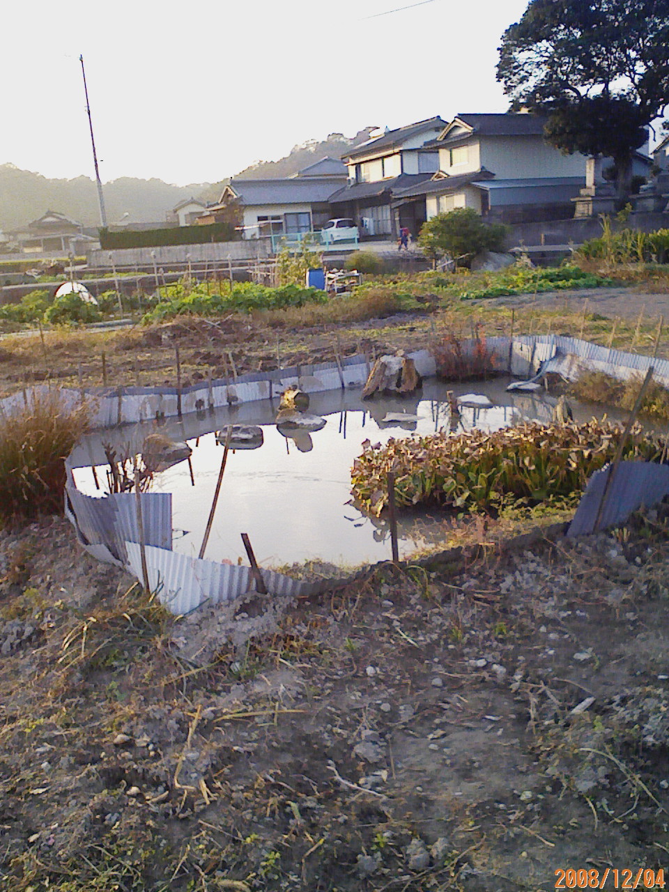月曜日から天気が良く暖かいので田んぼ池の大掃除をしました。 池のドロさらえ、蒼いの除去、縮小による形、石の配置等どろどろになり 頑張りました。池の中の魚「メダカ:フナ:どじょう」驚いている様子です。 後は落ち着いたらもう一度ドロを取り除き水の保管が上手く出来るようにします。 変更後の田んぼ池の画像添付します。 尚突然ですが狸のイラストを書いているHP教えて下さい。ヘチマに書きたいので 参考に画像を書くヘチマも画像添付です。