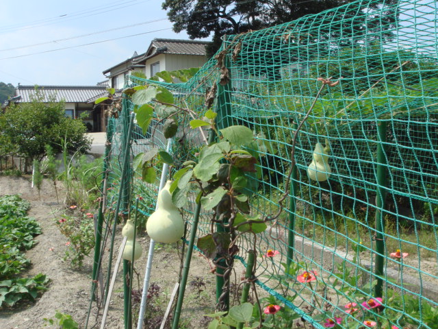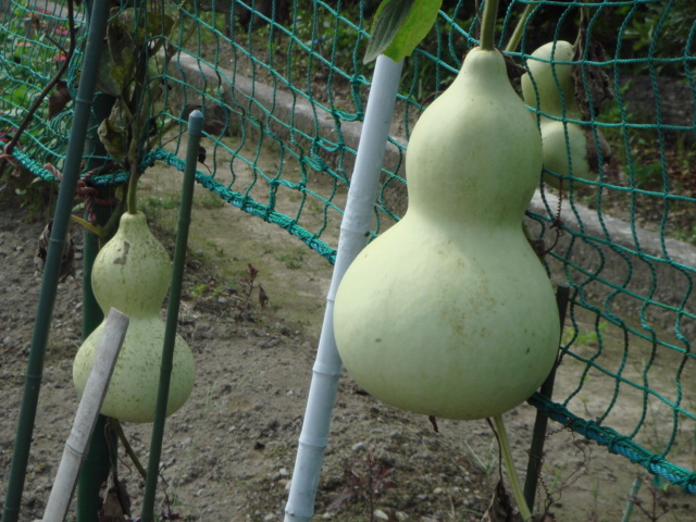 今日は朝から妻と母の介護認定調査員が来訪です。 本人に色々質問念のために立ち会いです。基準が厳しくなり??? 後は家でゴソゴソしています。月下美人に蕾が有り又花が咲きそうです。 今年は虫が付き春先に坊主にしたのですが勢いよく成長している様子です。 今年ひょうたんの苗を頂き2本植えていたのが実が付き成長しています。 対応どうしようか迷っています。取り合えずつるが枯れてから実を取り 口元に穴を空けて水を入れ中を腐らし対応して乾燥してから磨き後の仕上げに 悩んでいます。絵を描くか字を書くか何もしないか決めた居ません。 画像添付します。