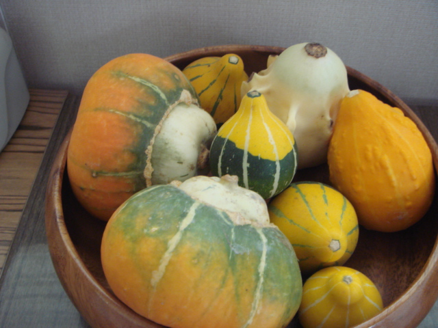 今年おもちゃカボチャを植えて収穫しました。画像添付します。 色んな形ありユニークです。家の入り口に飾っています。