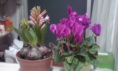 香りにひかれてお正月に買ったヒヤシンスも咲き始めた。