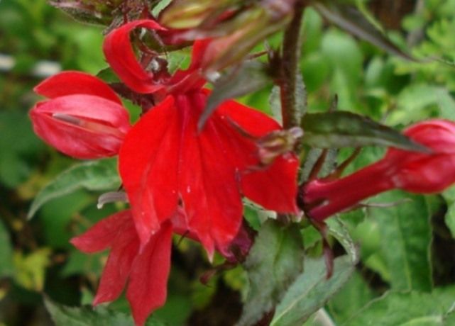 近所に赤花沢桔梗の花が咲いている。キキョウ科ミゾカクシ属の多年草です。花立て札に書いてあったがネットで調べるとベニバナサワギキョウ(紅花沢桔梗)と云う呼び方が多いようだ。アメリカ原産で赤色の艶やかな花色ですね。この植物は湿った場所が好きで、鉢植えでは育てにくいという難点があるそうだが上手に育てている。