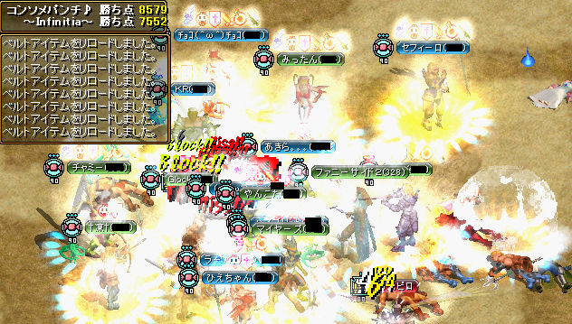 腹空かせまくってから思いっきり食うと、なんか気持ち悪くなりますよね。こんにちは、ファニーです。じゃ、戦績から。マリオで1戦ありました。お相手はダイヤモンド企画さんです。友人からいろいろ話を聞いてますが・・・どこまでなのか、一度見たことはなかったですね。接戦です。お互い一人ずつ倒したところですね。結果のSSを撮り忘れてしまいましたが、このままの点数で判定敗北でした。友人から聞いた話の件ですが、SSではちょっとわかりにくいかもですが、本当にずっと重なりっぱなしでしたね。団子ではなく、半数以上の人が重なった状態で戦うギルドさんははじめて見ました。外に出てくるのは剣士、天使、武道だけでしたね。有利な面もある反面、不利な面やギルメンの自由度がなくなるっていうのもありますが・・・これはこれで戦法の一つとしていいんじゃないですかね。賛否両論ありますが、相手を追いかけない等の意思統一ができないとやれないことですからね。30分間ほとんど重なった状態から動いてなかった剣士さんがいたのですが、どうやらPTのタゲ役になっていると思われます・・・。外に出てくる人をしとめられる火力がないと、勝つのは厳しいでしょうね。対戦ありがとうございました。さて、タイトルにもあるように石像作り頑張ってます。みんなの頑張りのおかげで200個達成です!そして・・・となって・・・キタ━━━━(゚∀゚)━━━━!!!! って感じです。すでに高レベルメンバーは、Lv5集めに、それ以外のメンバーは影の結晶を集めて回避+1%狙いを頑張ってるところです。最近wizでレイスPTにデビューしました。物理アチャで440目指してた時代は、全部納骨とソロで過ごしたので・・・レイスは初めてです。青POTいっぱい飲むけど楽しいです(*´∀`)ただ・・・レイスを釣るのが難しい・・・。PT組んだ方、釣るの下手で申し訳ないです。最近野良でスパイン秘密にいく機会があったんですが・・・ポタ持ってる人もってない人いると思うんですけども、みんな自分のポタを使わないためにけん制しあってますね。私が2回目でポタを使ったとき、みんな連打してなかったようで、私の次に入ってきた方が1回目にポタを使った人という・・・wすいてたからよかったものの、混んでる時間はみんなで連打してほしいですね!さて、最近ブログのアクセス数も結構いってうれしいです。勝手ながら・・・今私が所属してるギルド、コンソメパンチ♪とマリオシスターズのギルメン募集をブログでやらせていただきますね~。コンソメパンチ♪300↑メンバー募集(レベルは相談にものります)とくにBISさん歓迎してます。※メンバーの知り合い等なら、レベルは問いません。・Gvは週3回の22:40~23:00の間+攻城戦です。・600↑の方はまだいませんが、参加平均は400前後の2~4PT(ほぼ3PT)です。・戦ギルドではないので、そこまでGvで戦術がうまいとかそーゆーのはないかもしれませんが、やるからには勝ちたいって気持ちです!・ステUPは、全ステLv3、剣士、wiz、BIS、天使、アチャ、ランサスキルが+1です。・石像は、攻速+8%、移動速度+12%、他全てLv1は完成させてあります。マリオシスターズやる気のある方ならどんな方でも募集中です。人手が足りないので、活躍できますよ!・Gvは不定期に週3回前後23時以降+攻城戦です。・参加平均は450前後で、2PTほどです。・戦ギルドという感じではないですが、in時間がみんな遅いので、早い時間はギルチャがあまり光ってません・・・ので、in時間遅い人はお勧めです。・ステUPは、全ステLv3、wiz、BIS、アチャ、ランサスキル+1です。・石像は、攻速+4%、移動速度+4%、他も次第に完成していきつつあります。興味ございましたら、お気軽に耳下さい。質問だけでも対応いたします。「ファニーサイド」「ファニーサイド2」「レールデュタン」「メデューサ」のどれかでinしています。よろしくお願いいたします。じゃ、こんな感じで・・・今日はいつもと違う感じですがwまたにーノシ~おまけ~モーション消えて、レイドがおかしくなったりすると、すっげー射程の長いエントラができる・・・気がする。見た目だけねw