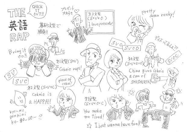 3年程前からYouTubeで気軽に出来る英会話学習の動画がUPされている『バイリンガール英会話』。初期の頃の動画はぎこちなかったけど、最近はかなり凝った編集で、完成度も高い!私がこのチャンネルを知ったのは1年程前だけど、すっかり気に入って、ファンになってしまった!の絵はその『バイリンガール英会話』のChikaさんが、同じくYouTuberで「お勉強ラップ」シリーズを製作しているラッパーのCo慶応さんとコラボして製作した【THE英語RAP】をイラストにしたもの。つたない絵だけど、Chikaさん、Co慶応さんにも見てもらったら、喜んでいただけました!でも何より本編のYouTube動画を見ていただくのがイチバン ↓ をクリックして、Check it out
