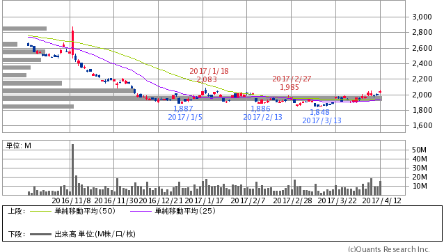 0.5%下がっているので、1%上がって、2103円くらいでないといけない。