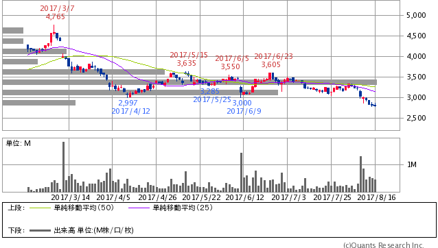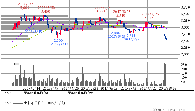 ユニバーサルエンターテイメント半年 この株が先行して下がっている