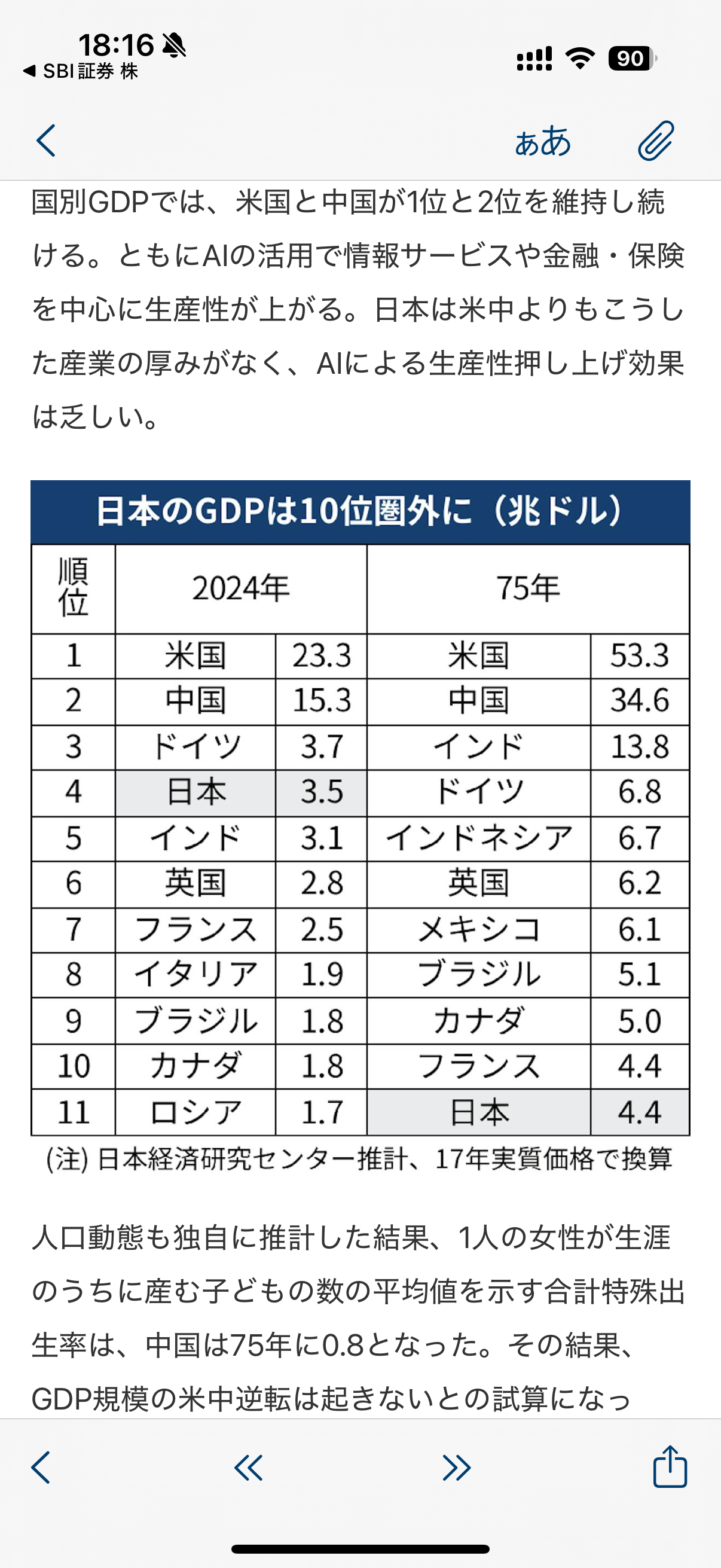 また日経デジタルより、2075年には日本の一人当たりのGDPが現状の29位から