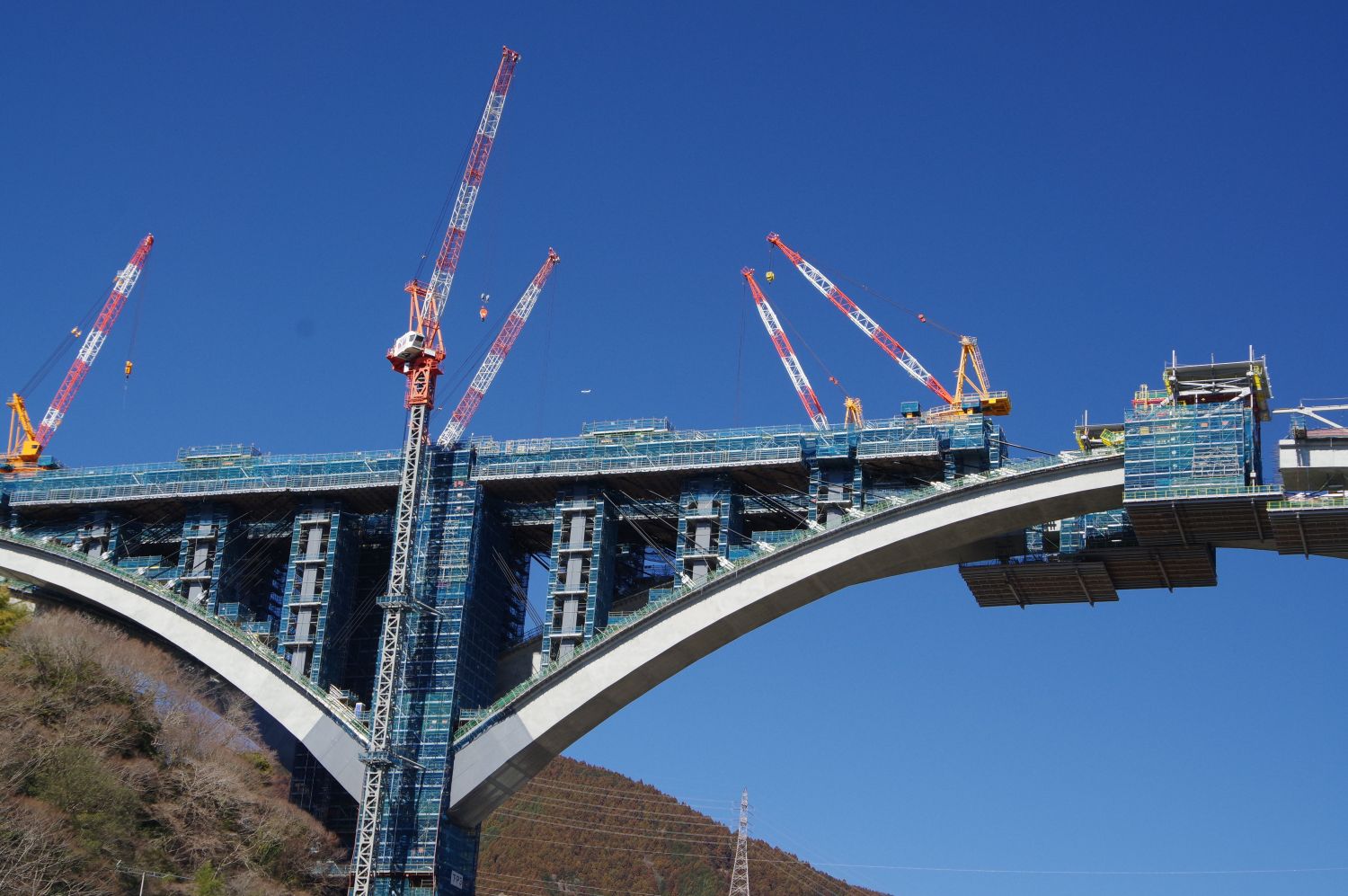 両岸から迫出した橋桁がまもなく中央で繋がろうとしていました。