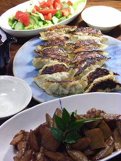 今日は、朝から快晴!秋晴れの、良いお天気・・・気持ちいいね。でも、またも台風14号が接近中・・・・この天気は今日だけのようです。今度の14号は、もしかしたら関東上陸?今後の、天気は要注意ですね。夕食メニューです。・アボガドサラダ・餃子・鶏ごぼう炒め手前が、黒いぞ!!フォト、失敗これも、定番料理かな。鶏肉とごぼうは、相性がいいよね。ごぼうのコリコリ感を残してね。 鶏ごぼう炒め by FELLOW鶏とごぼうの組み合わせといえば・・・鶏ごぼうの炊き込み、団子、ごぼうの鶏肉ロール!鶏がごぼう背負って?何で、言わないのかね(笑)これは、レシピとはいわないでしょうね。(笑)残りのアボガドでサラダに。◆作り方はこちら アボガドサラダ by FELLOWアボガドは、脂っぽい感じだけど。脂質の大半は、不飽和脂肪酸なんだよ。だから、コレステロールの心配は無し。ビタミンE、リノール酸、オレイン酸がたっぷり。嬉しい食材ですねレモンをたっぷり効かせて、頂きます。大好きな、餃子!外で食べるよりも、自分で作るのが一番!!いつも、沢山食べちゃうんだよね~この日も、上の大皿で2回も焼いちゃった。しかも、これ大判餃子の皮なのです。皮も、作らないのかって?挑戦しようとは、思うけど・・・市販品です。餃子だと、やっぱりビールなんだよね。納得してる人も多いのでは?熱々の、餃子は最高!ビールは美味しい今日も、幸せな時間ありがとうです。 参加しました・・・宜かったらクリックしてくださいね ◆HOME ◆BBS日記 ◆本日のワイン ◆旅行 ◆ウォーキング ◆食器 ◆家作り ◆カテゴリ未分類 ◆我が家のグリーン ◆料理レシピ ◆スイーツ ◆美味しい店