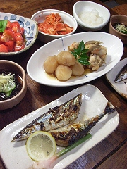 今日は、昨日の気温が嘘のよう・・・久しぶりの大雨ですね。紀子様も、無事出産でしたね。皇室では秋篠宮さま以来41年ぶりとなる男のお子さま。明るいニュースはいいですね!おめでとうございます昨夜からの、贅沢なメニューから一転・・・庶民的なメニューです。 秋刀魚が安くなりましたね・・・ピカピカと美味しそうなので買ってきました。やっぱり、初物は塩焼きと大根おろしだよね。・秋刀魚の塩焼き&大根おろし・佐渡のモズク(沢山買ってきたのだ)・トマトサラダ・海老団子とカブの煮付け・韓国直産キムチ(これはNちゃんの韓国土産 土産物屋のじゃないよ!!さすが、やっぱり美味しい)・ハマグリのクラムチャウダー(まだ、残ってるの)海老は、たたいてごぼうの笹垣と混ぜ混ぜ!お酒に塩コショウして。圧力鍋で、蒸上げました。それを、カブと煮ました。海老たっぷりの煮汁も、入ってるよ。秋刀魚が、美味しいね~今日も幸せだわ。本日は、休肝日です。参加しました・・・宜かったらクリックしてくださいね(^^ゞ 以前紹介した、タコとオクラの梅サラダとインゲンのシャカシャカ炒めのレシピ。こちらも、トップの料理レシピにもUPしました。是非お試し下さい。◆作り方はこちら 超簡単、タコとオクラのサラダ by FELLOW インゲンのシャカシャカ炒め by FELLOW◆HOME ◆BBS日記 ◆本日のワイン ◆旅行 ◆ウォーキング ◆食器 ◆家作り ◆カテゴリ未分類