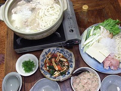 本日は、小雨の横浜です。コロコロと変わりやすいお天気・・・今週は涼しいらしい。変わりやすいお天気は、やはり秋になったって事かな。先日、ダーリンはカンパチのお刺身ともろこもお土産だったのです。もろこ・・・釣り好きの方は、ご存知かも。もろこ違いが判明・・・ダーリンより指摘!このページの大物釣りのページに出てるのがもろこ(クエ)です。怖い顔してるんだね・・・これがもろこ小さいの、想像してた?25キロだって・・・・ダーリンも狙ってるらしい。一度も、釣ってきたことはありません。のこぎりで、捌いたそうです・・・・だから、今夜はもろこ鍋です。主役のもろこ・水菜・ネギ・豆腐・糸こんにゃくエノキ茸・エリンギ・うどん・鶏挽肉のつみれこの鶏挽肉のつみれは、ふわふわで美味しいよ!長いも・ネギ・おろししょうが・卵・塩・胡椒・小麦粉これを、挽肉に全部入れて良く混ぜるの。ふわふわのとろって感じになります。これ、もろこの背骨コラーゲンがいっぱいで~す。お腹のあたりもたっぷりです。カロリーも気になるけど・・・・お肌の為に、パクパクです。ダーリンが、メチャ褒めしてたけど・・・・やっぱ、釣りたての方が美味しいんじゃない!今度、頑張って釣ってきてくれ。後は、イカとほうれん草のトマト炒め完熟トマトが、熟れ過ぎちゃったので。◆作り方はこちら イカとほうれん草のトマト炒め by FELLOWこれって、パスタ食べたいかも!参加しました・・・宜かったらクリックしてくださいね(^^ゞ 以前紹介した、超簡単ヤンニャンジャンの野菜炒めとヘルシーおからのカレー団子のレシピ。こちらも、トップの料理レシピにもUPしました。是非お試し下さい。◆作り方はこちら 超簡単ヤンニャンジャンで野菜炒め by FELLOW ヘルシーおからのカレー団子 by FELLOW◆◆◆ あなたのお気に入りのレシピ本はどれ ◆◆◆ ◆HOME ◆BBS日記 ◆本日のワイン ◆旅行 ◆ウォーキング ◆食器 ◆家作り ◆カテゴリ未分類 ◆カテゴリ未分類 ◆我が家のグリーン ◆料理レシピ ◆スイーツ ◆美味しい店