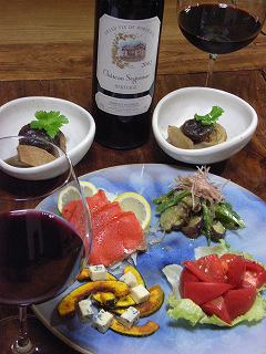 心配してた台風14号も、進路を変えてくれてひとまず安心。今日は、ダーリンのお店です。今朝、家の進み具合を見に寄り道してきました。屋根瓦が、敷かれ始めていました。詳しくは、後日UPします。夕食メニューです。・前菜4点盛り(笑) スモークサーモン 茄子とインゲンの酢味噌和え、茗荷を添えて かぼちゃのチップ&ブルーチーズ トマトのアルガンオイルサラダ・焼き豚・煮物◆作り方はこちら 茄子とインゲンの酢味噌和え by FELLOW 『アルガンオイルのトマトサラダアールグレー風味』これは、前回のアルガンオイルを使ったレシピ。前回の話はこちら作り方はアルガンオイルのメニューの中。アルガンオイルで、良い油類を少量取る。身体にもいいですよね。香りも楽しみながら、サラダがグレードUP。料理にこくを出すけど、素材の邪魔はしない。使いやすい、アルガンオイルです。アルガンオイルの一人者、シャルーフ教授はタルガニン生産共同組合を立ち上げました。アルガンの木を保護する大切さ。アルガンオイルを、産業に利用するという方法を人々に伝えています。アルガンの森は地球の温暖化、砂漠化を防ぐ地球環境資源。今では、ユネスコの生物圏保護区の世界遺産にも指定されています。そして、アルガンオイルは 2001年にスローフード大賞を受賞。豊かな風味が、フランス、ドイツ、アメリカで消費者に知られるようになりました。高級レストランのシェフご用達として、日本の高級レストランでも使われています。そして食用だけでなく、自然派のバージンオイルとしてフランスの化粧品会社も使用。エステサロンがマッサージオイルとして使い始め、急速に注目を浴びています。 詳しくは、こちらアルガンオイル焼き豚を出したら・・・・ダーリンはラーメンが食べたいって!そんなわけで、急遽ラーメンを作ることに 今日のワインはこれ。シャトー・スゴンザック・エリタージュ 2002赤の、フルボディです。グラスに、注ぐと木樽の香りがいっぱい。バランスよく、深みのあるワインです。私の、好みかな参加しました・・・宜かったらクリックしてくださいね ◆HOME ◆BBS日記 ◆本日のワイン ◆旅行 ◆ウォーキング ◆食器 ◆家作り ◆カテゴリ未分類 ◆我が家のグリーン ◆料理レシピ ◆スイーツ ◆美味しい店
