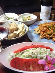 料理、バシバシUP・・・でもないですね。整理が悪くて、日付が前後しますが(^^ゞ 本日2回目の日記です。トップページの料理レシピからも探せますので、過去メニュー検索にご利用下さい。・稲庭うどん(薬味はゴマ・ねぎ・しょうが)・モロヘイヤの天麩羅& シラス・玉葱・人参のかき揚げ・トマトの中華風サラダ・モロヘイヤサラダモロヘイヤは、野菜の王様!ミネラル・カロチン・ビタミンが一杯。美肌や、細胞老化にも効果大!◆作り方はこちら 美肌効果のモロヘイヤサラダ by FELLOWトマトが沢山ある時や大人数でも楽チン。超簡単な、中華風トマトサラダ。◆作り方はこちら 超簡単、中華風トマトサラダ by FELLOW今夜は、モロヘイヤ沢山食べたから・・・明日は、お肌がプリプリ?即効性は??疑問です。今日のワインは、ムーラン・ド・ガサック・フィガロ・ルージュ 2004チェリーと木苺の濃縮果汁! 時間と共に花開く・・・かな?参加しました・・・宜かったらクリックしてくださいね(^^ゞ以前紹介した、イサキのホイル焼きのレシピ。こちらも、トップの料理レシピにもUPしました。調味料を、加えたら、オーブンにおまかせ。その間に、他のレシピにも取り組めますよ。是非お試し下さい。◆作り方はこちら オーブンにお任せ、イサキのホイル焼き by FELLOW◆HOME ◆BBS日記 ◆本日のワイン ◆旅行 ◆ウォーキング ◆食器 ◆家作り ◆カテゴリ未分類