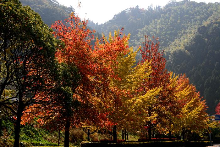 娘に家の前に咲いているセンニチコウ 朝8時。娘から赤ちゃんを病院につれて行きたいのでお願いします。旦那は仕事で忙しいので、午前中空いている私たち夫婦で時々娘と孫娘の世話に行く。今日は遠く離れた病院に車で送り迎え。頼まれれば嫌と言えない。車で往復2時間余り。途中買い物をしたりで午前中が潰れてしまった。途中紅葉スポットを見つけられたからいいか。