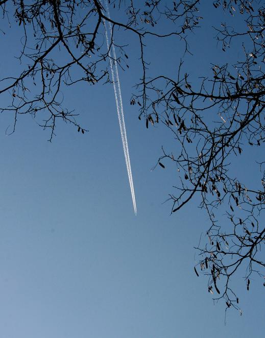 飛行機雲最近よくでる雲 雲の形が好きでよく空を見上げる癖がある。家から外に出ると、まず空を見る。写真になりそうな雲があると急いでカメラを取り出す。前景によさそうなものがあるとさらにいい。